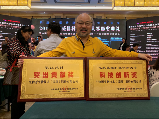 本次大会对较早之前完成的“限抗减排科技创新大赛”进行了颁奖仪式,生物源股份凭借灭活乳酸菌系列产品荣获“科技创新奖”、“突出贡献奖”两项大奖。本次大赛旨在鼓励行业企业等提供更加有效的解决方案以及产品,让更多的绿色产品服务养殖业,让环保以及食品安全有真正的实施工具。奖项评选由专家评审和网络评选两个部分组成,其中网络评选权重占40%,专家评审占60%。本次大赛由于涉及限抗、环保减排等当前行业焦点话题,因此受到了极高的关注,全程高潮迭起。8月份提名征集一经开始便受到业内高度关注,92个优秀的企业/产品同台竞技。生物源股份灭活乳酸菌系列产品凭借领先的技术,过硬的口碑在众多竞品中脱颖而出,是对我们20年努力的肯定,我们会继续做得更好!